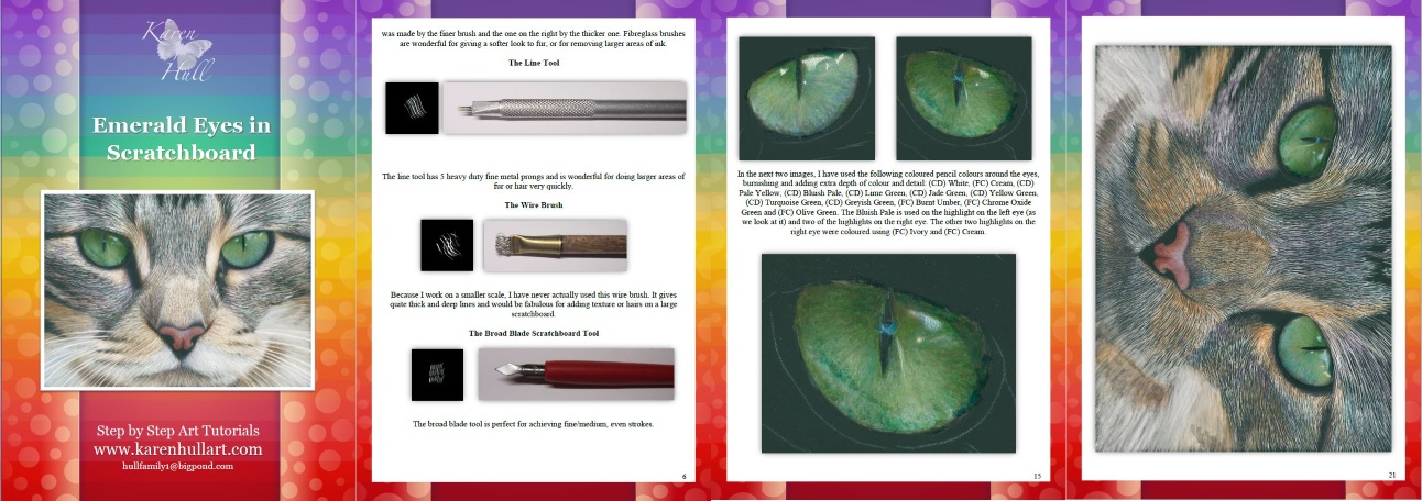 This 24 page step by step tutorial shows you how to create this wonderful cat artwork using scratch art, ink, inktense pencils and coloured pencils. It includes multiple full page colour images and a comprehensive list and explanation of all tools used. To assist you in completing this tutorial, I have also completed a Speed Drawing on YouTube.