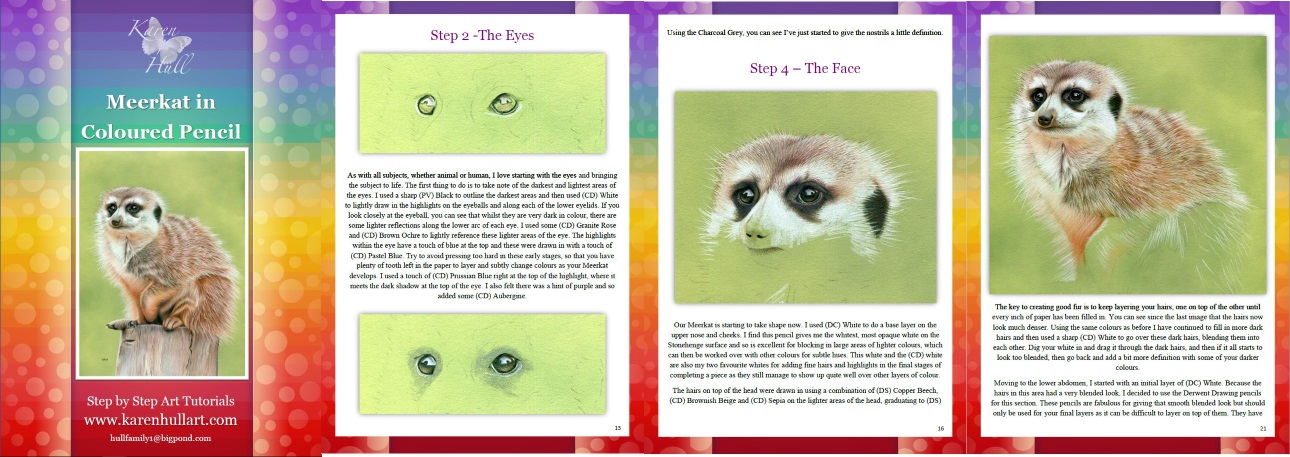 This 29 Page tutorial shows you how to easily create a coloured background using Stonehenge paper and then includes a comprehensive step by step guide on how to draw this charming Meerkat perched up on his throne.