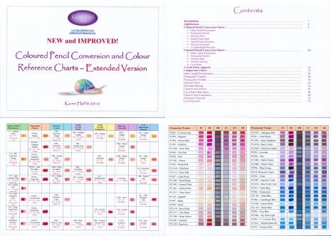 Many of you have contacted me asking for the original coloured pencil conversion charts to be expanded to include more brands of pencils. I am so happy to announce that I have finally been able to create the new extended version of these charts. Now with 55 pages, the new version includes conversions and colour swatch comparisons for the following brands:
