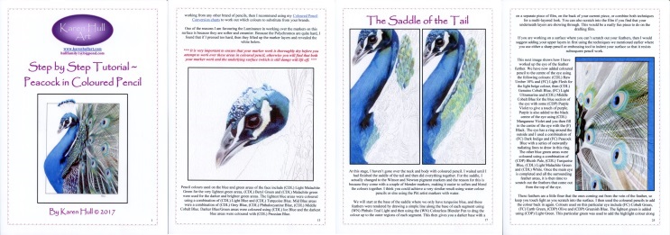 This 30 page tutorial shows you how to create this beautiful peacock using coloured pencils. You can complete this tutorial in a number of ways, including using coloured pencils only, coloured pencils with lightfastmarkers and coloured pencil on layers of drafting film. Several options are discussed throughout this tutorial so that you have flexible options when it comes to materials and surfaces and don't have to outlay a lot for new materials.
