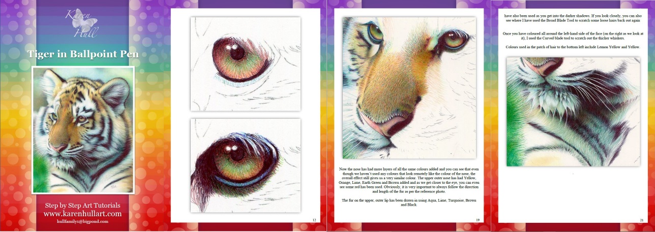 This 24 page step by step tutorial shows you how to draw this exquisite tiger using only Ballpoint Pens (Biros) on Ampersand Claybord. This tutorial includes multiple full colour images, along with detailed descriptions each step along the way. You can also watch a speed drawing of this artwork on YouTube